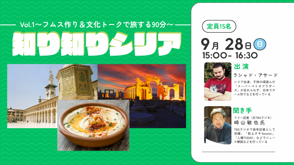 → シリアの暮らし、食文化、ゲームに救われた子ども時代、そして日本での挑戦を語ります